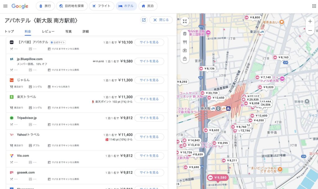 実際に宿を予約する際、複数のサイトでセール開催状況を確認します