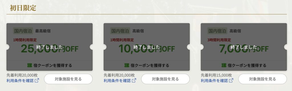 しかし、対象施設が限られているのと、配布枚数が少なくて割引額が大きいクーポンはすぐ無くなってしまいます。