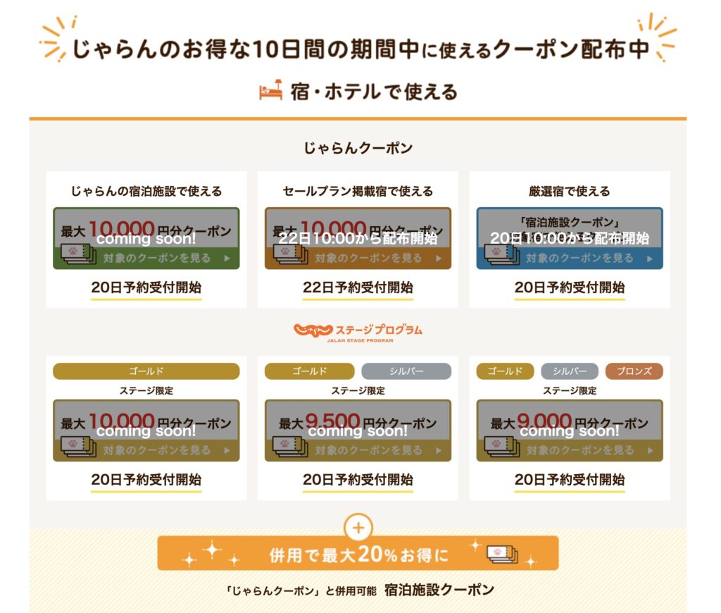 じゃらんのお得な10日間毎月20日〜29日毎月同日に実施されるためスケジュールが組みやすい