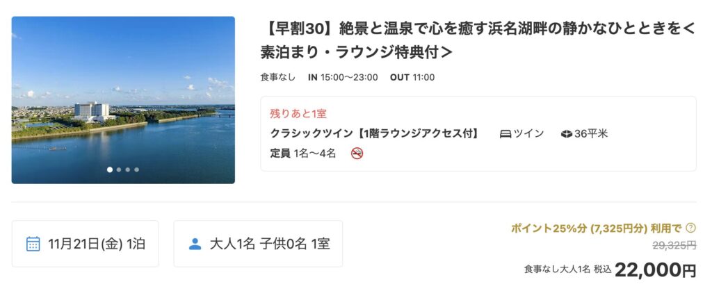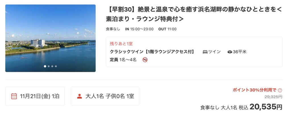 セールは稼働が悪い日の埋めるための手段の一つのため、旅行する機会が多い土曜日などでは、セールプランがないこともあるので、ご注意ください。